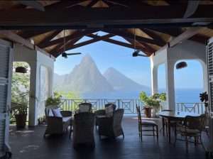 We will be staying at the decadent…exquisite Le Gallerie, perched on a cliff with unobstructed views of the magnificent Caribbean UNESCO protected waters and Pitons. All rooms have balconies: “With nothing to the west but sea, sky and sun, she is a rare beauty…”.